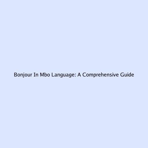 Bonjour in Mbo Language: A Comprehensive Guide